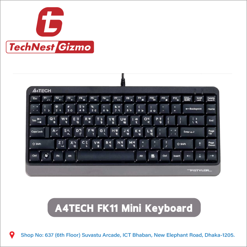 A4TECH FK11 Grey USB FN-Hotkeys Multimedia Mini Keyboard with Bangla